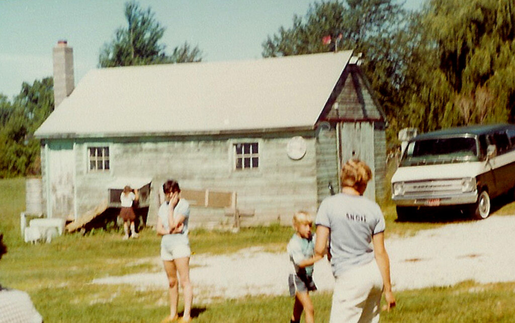 The Shop during a summer family gathering. Note one of my cousins having a chat with Bugs, the rabbit, at his indoor/outdoor apartment.